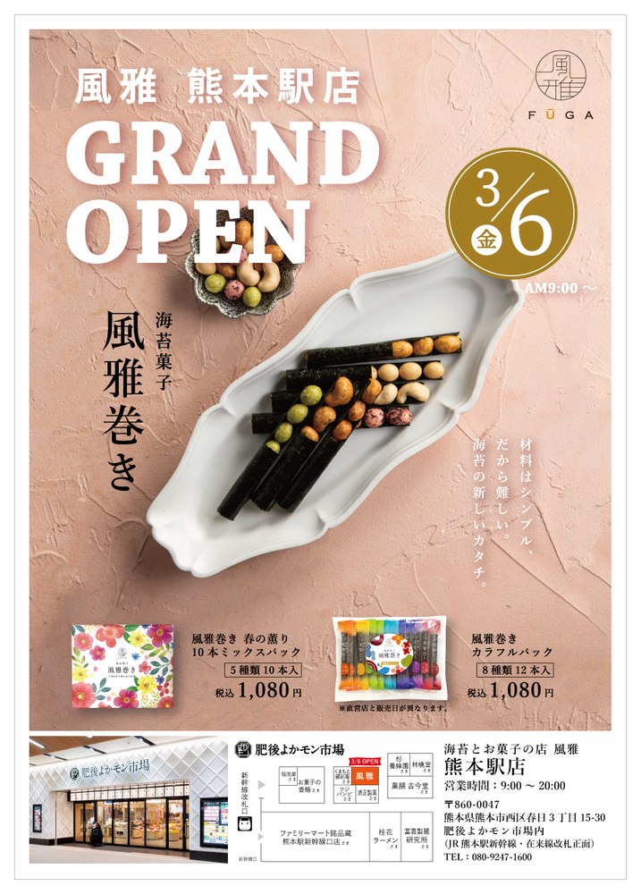 3月6日(金)AM9:00より、風雅 熊本駅店がOPENいたします!