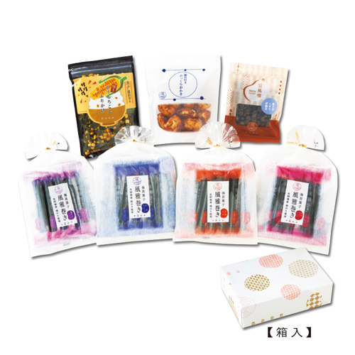 人気の風雅巻きとふりかけ、豆菓子等のお菓子を詰合せました。