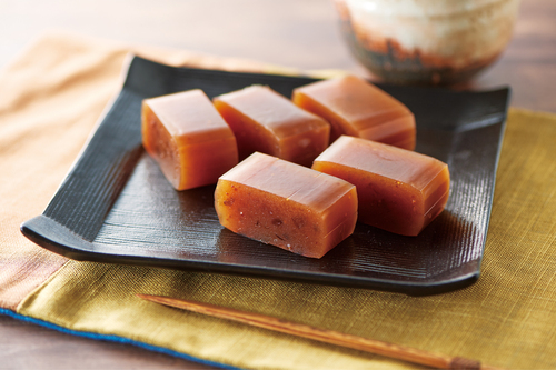 幻の黒いちじくを、羊羹1本につき約2個分練り込みました。いちじくの爽やかな酸味やつぶつぶ感、そして羊羹の上品な甘さが引き立てあう、贅沢な味わいの練り羊羹です。
