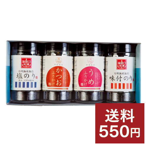 ・かつおふりかけ(80g) ・梅ふりかけ(80g) ・塩のり(10切70枚) ・味付のり(10切70枚) |