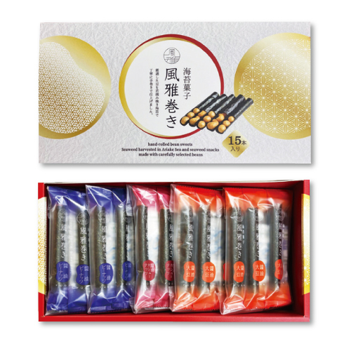九州・有明海産の若摘み焼のりと、厳選した豆を使用した風雅巻き。